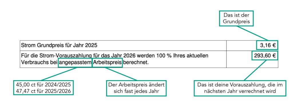 Hier möchte ich dir einmal die Stromabrechnung für 2025 erläutern. Durch das neu Verwaltungssystem sieht die Abrechnung anders aus, als du es gewohnt bist.